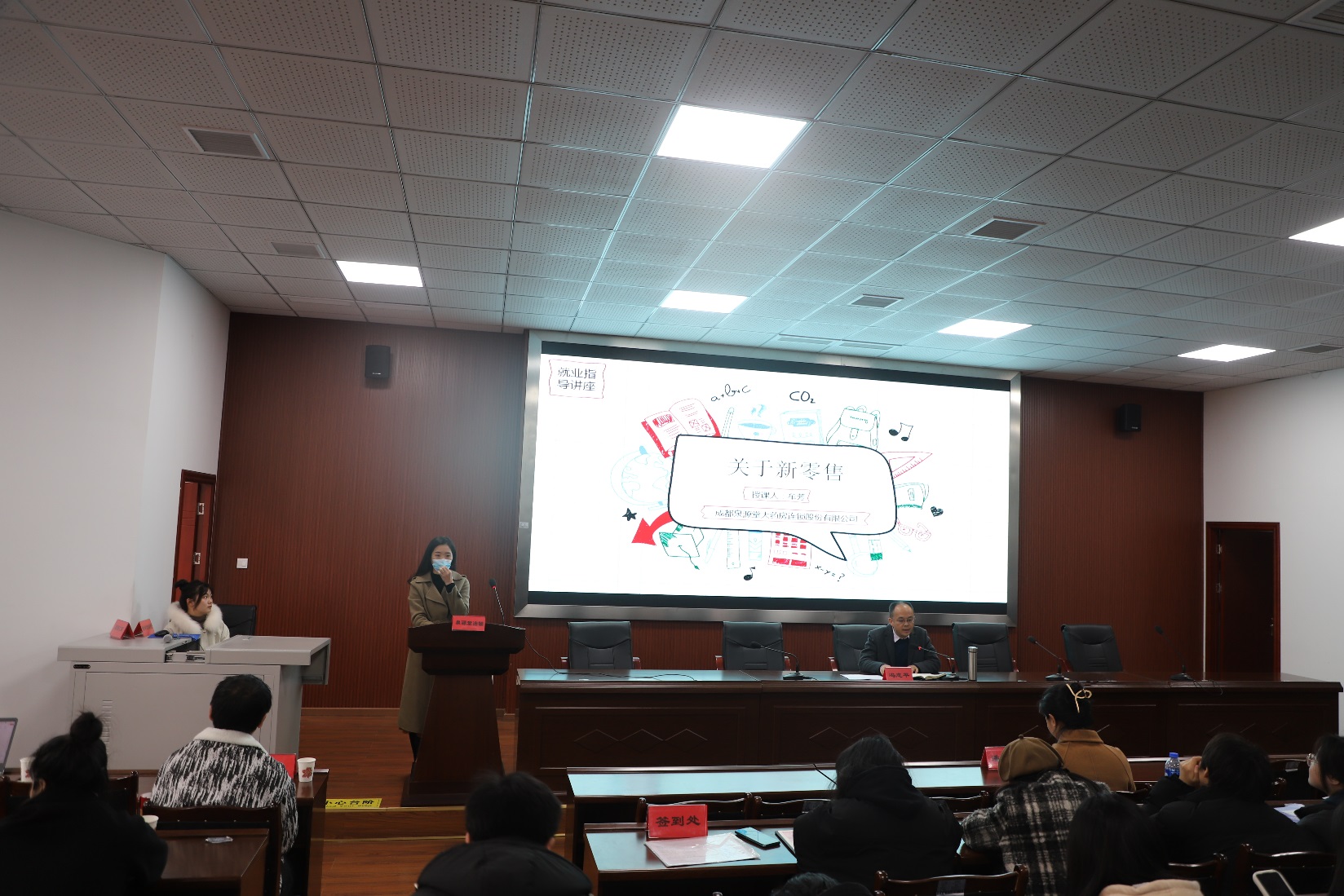 2023年10月31日16:30,学校2024届毕业生职业指导讲座在图书馆四楼举行,本次讲座由成都泉源堂大药房连锁股份有限公司人力资源副总监袁维主讲,主题为“关于新零售“。她从药品零售和电子商务两个角度,为大家剖析了新零售的运营模式、岗位职责、工作内容、能力标准等内容,让到会同学耳目一新,精神振奋。