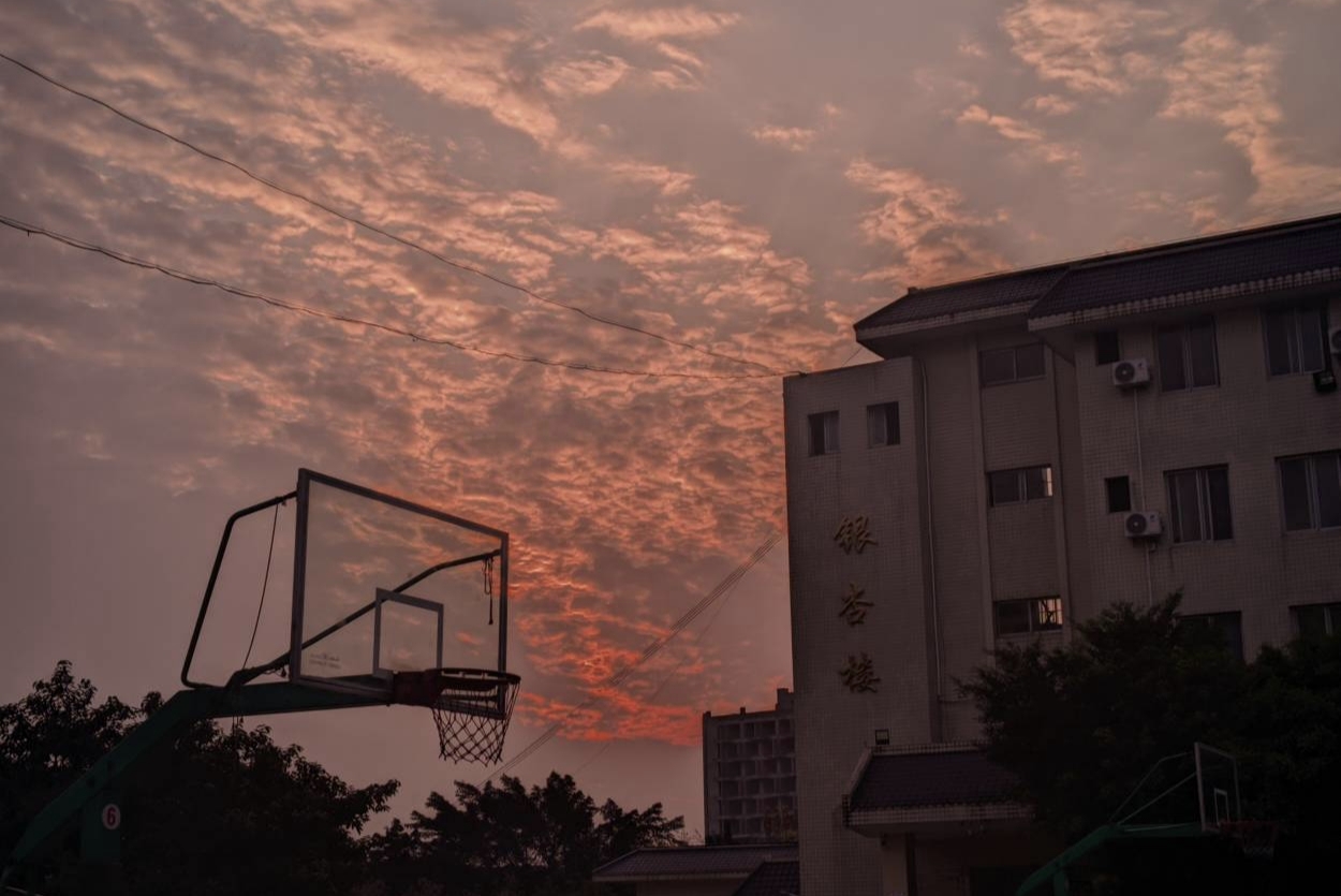 下课铃惊起一枚松鼠,呲溜溜爬过树梢和楼顶,仿佛也想加入沸腾的校园。有人抱着书在林荫下疾走,有人举着手机定格植物园里盛开的芍药、连翘、蒲公英……直到晚霞给钟楼披上金纱,篮球场仍跃动着奔跑不息的年轻身影。