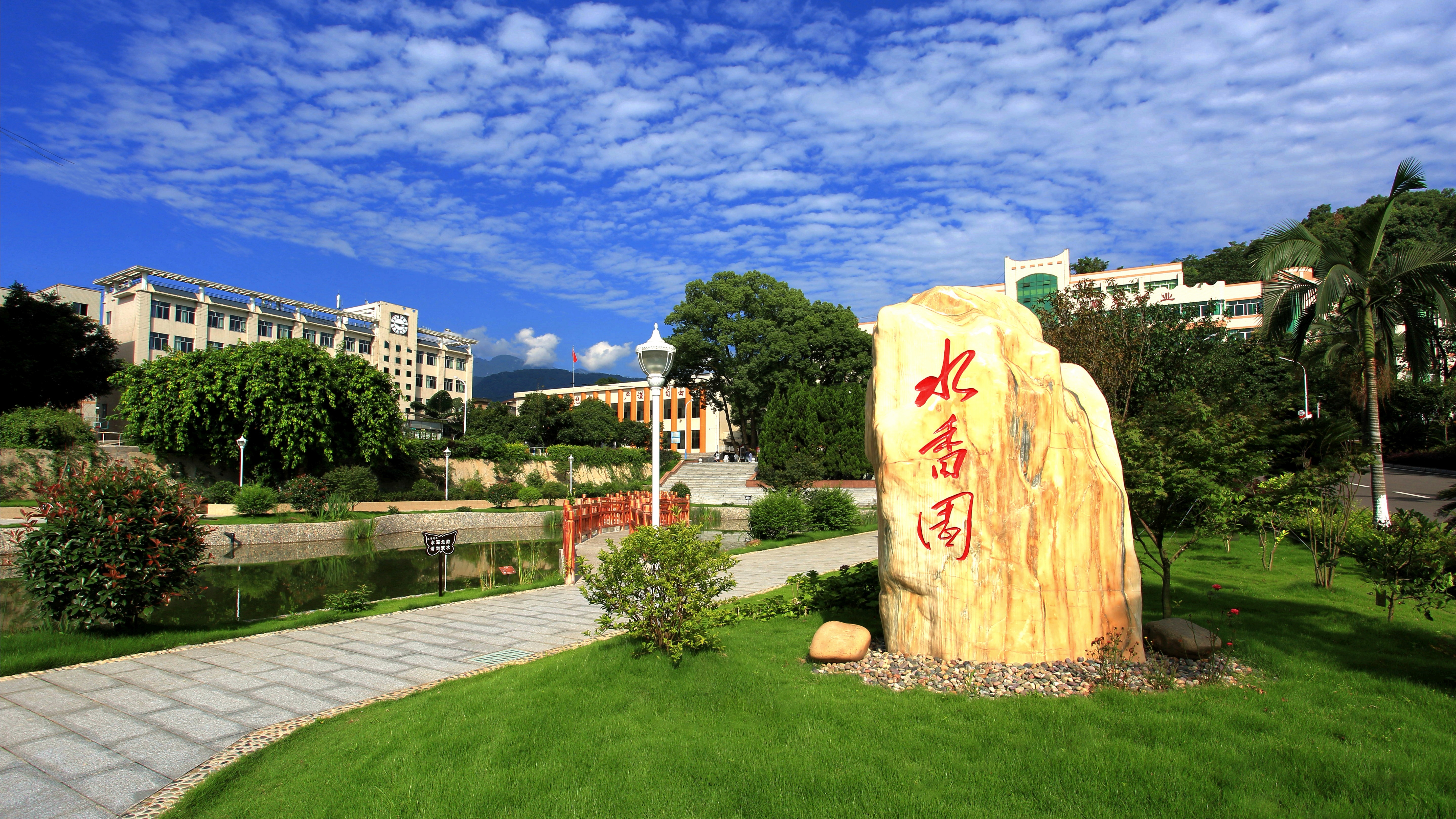 青草从每个缝隙里钻出来,在校园铺开翡翠绒毯。老香樟抖落陈年旧叶,新芽衔着阳光在风中舒展,绿意淌成蜿蜒的溪流,漫过中医药文化长廊,告诉水香园里的鱼儿“春天来了”。